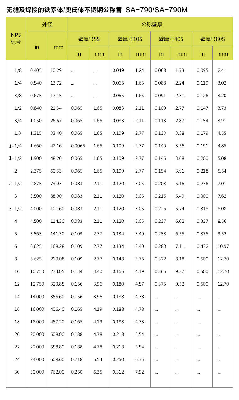 ASTM A789 (ASME SA789)美標(biāo)雙相鋼管執(zhí)行標(biāo)準(zhǔn) ASTM A789 (ASME SA789)一般用途無(wú)縫和焊接鐵素體/奧氏體不銹鋼管子 性能特點(diǎn): 1.優(yōu)良的耐全面腐蝕和耐局部腐蝕性能,特別是耐應(yīng)力腐蝕、耐點(diǎn)腐蝕、耐縫隙腐蝕、耐腐蝕疲勞及耐磨蝕等 2.良好的焊接性 3.良好的綜合力學(xué)性能 4.良好的耐晶間腐蝕性能 5.性價(jià)比高,服役周期長(zhǎng)