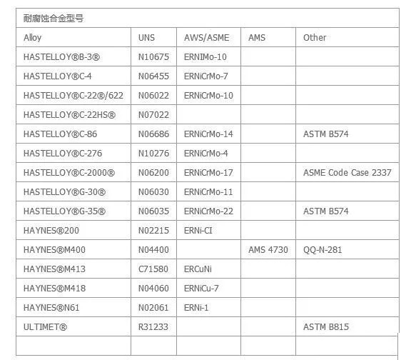 哈氏合金母材對(duì)應(yīng)焊材對(duì)照表(3)